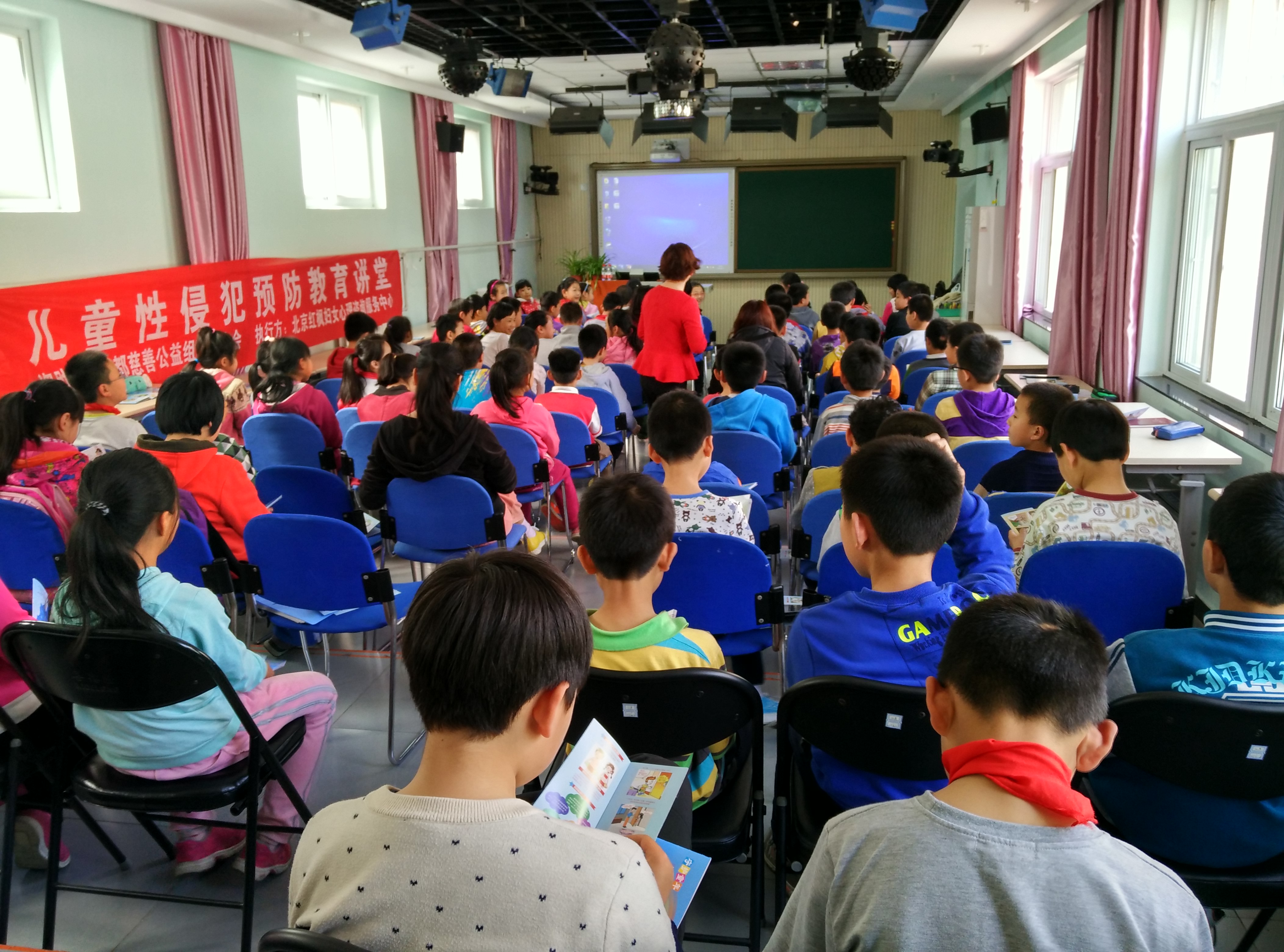 今天是2015年4月17日,阳光明媚,路边的桃花、杏花、海棠花竞相开放!我们一行三人来到了位于广安门外的红莲小学,准备给这里的孩子们上一堂别开生面的儿童性侵犯预防教育课。下午两点,四年级的两个班的孩子们准时来到了教室,我猜这时候孩子们的心情应该是好奇、忐忑、茫然。我们先发下去课前评测题让同学们填,好了解孩子们对于这方面的了解程度。填表结束,讲课正式开始,主讲老师王健老师很有经验,首先她让孩子们做了个游戏,先让几个同学说出几个abb形式的词语,有的说沉甸甸,有的说亮晶晶,还有的说红通通等等,然后让那几个同学站到台前,让她们摆出烧水壶的造型,看到她们可笑的造型,同学们兴奋了起来,更可笑的是,王老师让她们摆造型的同时说出身体的一个部位:屁股,再加上刚才说出的词语,于是,奇怪的词语相继出现:我的屁股沉甸甸,我的屁股亮晶晶,我的屁股红通通。瞬间,同学们笑得前仰后合,在这样的气氛中,性侵犯预防教育在不知不觉中拉开了序幕。随着王老师深入浅出的讲解,孩子们渐渐明白了哪些是身体的隐私部位,孩子们还在纸上画出了这些部位,从而有了直观的认识。知道了这些部位要保护好,不许异性碰,热烈讨论了如果去医院看病,允许医生碰触这些部位吗?最后得出一致意见:有爸爸妈妈在场,医生可以碰触。学习了如果性侵犯将要发生怎么办?不幸发生后该如何处理等知识,还让孩子们现场演练了如何打110报警电话,帮她们加强记忆了打电话的几个要点。时间过得很快,一个小时到了,孩子们还在热烈的讨论着,因为时间的关系,我们不得不结束了本次课程,通过课后评测表,我们都看到了孩子们的不少改变,从课前的懵懂,到课后的明晰,从有些同学认为遇到性侵犯时就和坏人拼了,到课后认为,先顺从,生命更重要!这些改变让我们心里暖暖的,我们希望通过这些课程,能在孩子们的成长道路上,有了这盏小小的灯光的陪伴,少一些伤害,少一些磕碰,少一些哭泣!这也会成为我们不断前进的无穷动力!