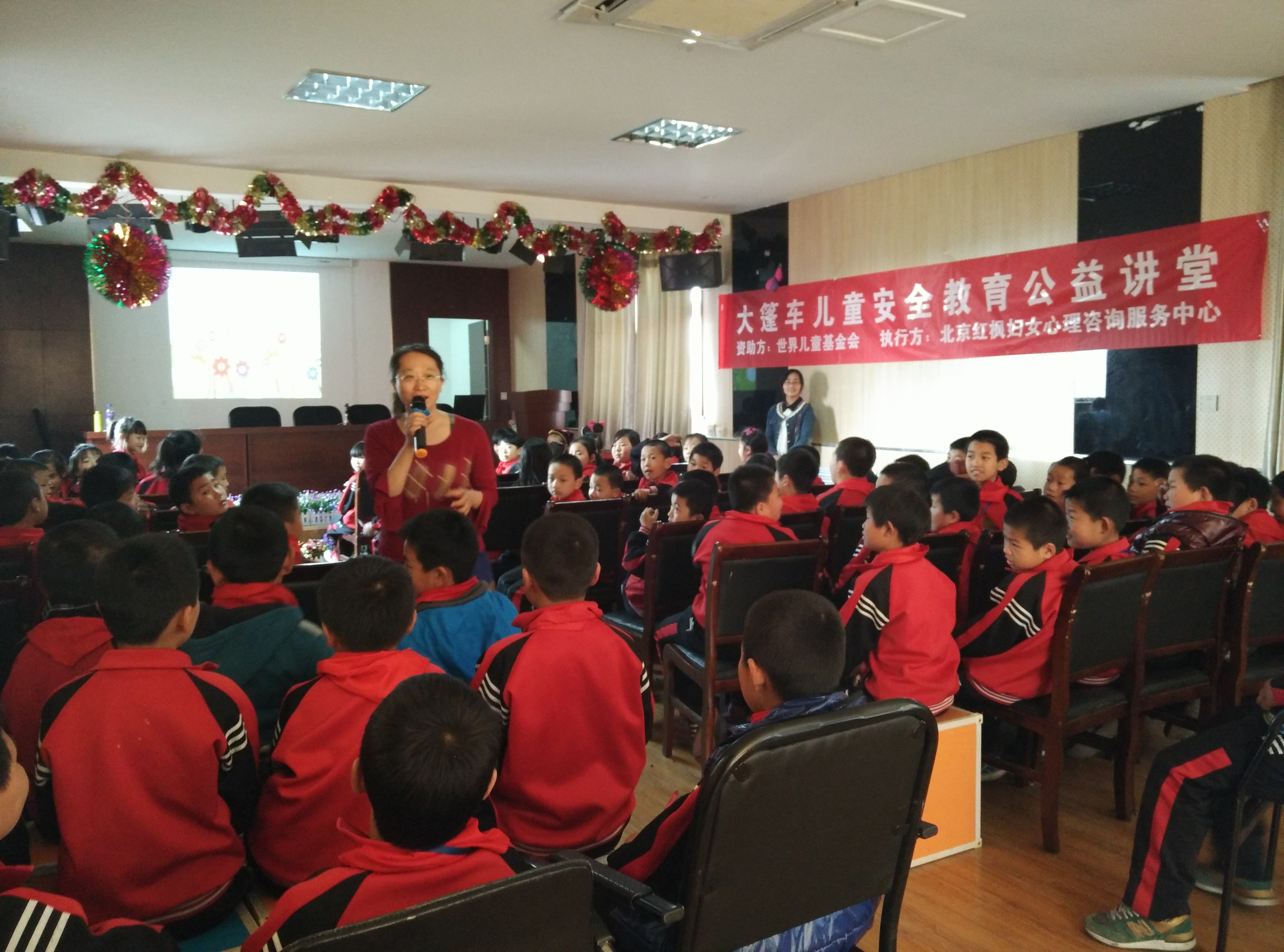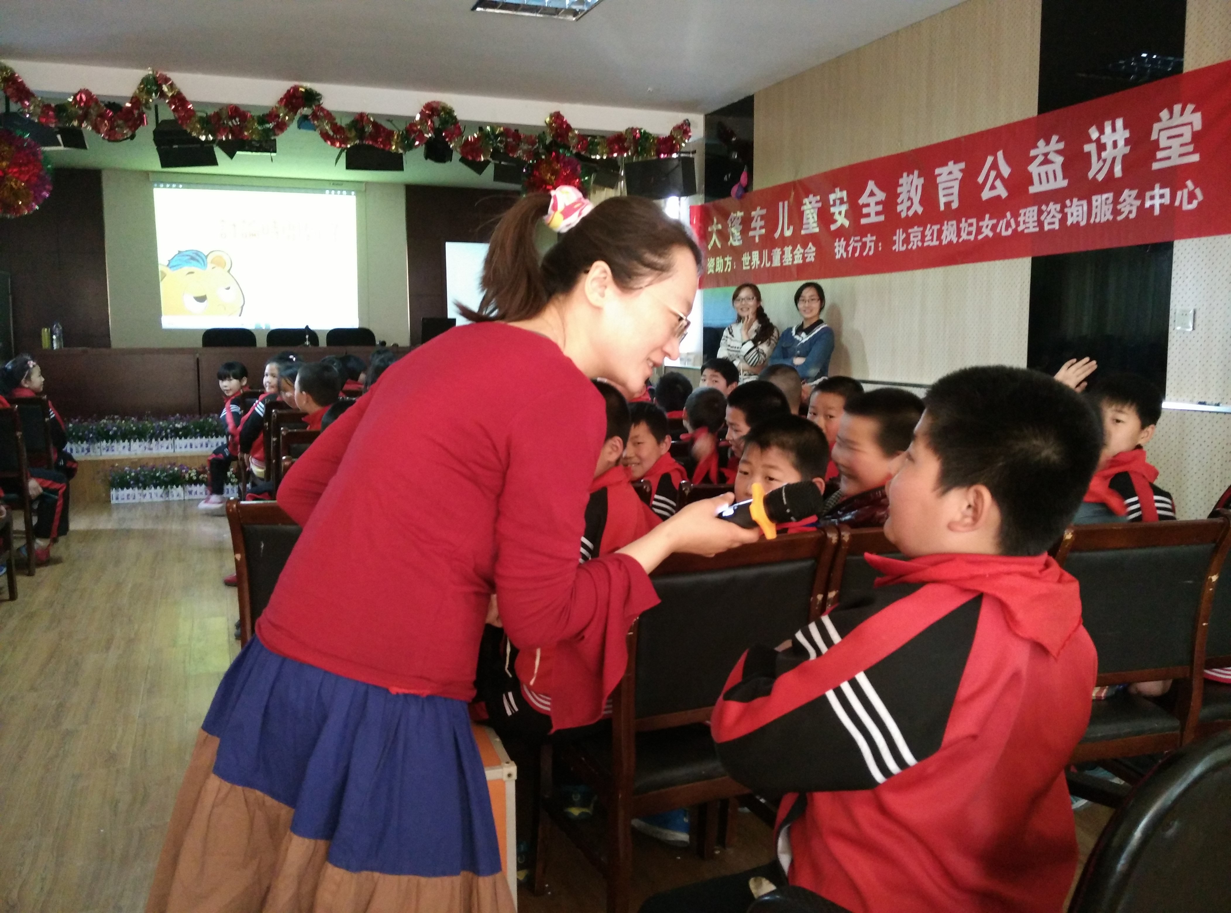 2015年4月20日,北京红枫妇女心理咨询服务中心的两位工作人员来到了位于十八里店桥金地实验小学,准备给这里的孩子们上一堂别开生面的儿童性侵犯预防教育课。下午三点三年级两个班的孩子们在班主任的带领下准时来到会议室,在老师及项目官员的指导下孩子们完成课前评测题的填写工作,此项工作是为了更好的了解孩子们在未开展儿童性侵知识大讲堂前的认知水平。填表结束讲课正式开始,主讲乔华老师首先带领孩子们做了一个热身游戏,使得全场的气氛立刻被带动起来,紧接着乔华老师趁热打铁地通过一个有趣的视频引出“隐私处”等非常重要的名词,并且和孩子们一起以我问你答的互动形式探讨“什么是隐私部位?”、“哪些部位要保护好?”、“去医院看病,允许医生碰触隐私部位吗?”,在30分钟的互动环节中,孩子们逐渐了解以上这些知识点,并在最后的10分钟现场演练了如何拨打110报警电话,帮孩子们加强记忆报警电话的几个要点。课程结束后,北京红枫妇女心理咨询服务中心的工作人员将课后评测表发给孩子们填写,以此评测下孩子们的听课效果,孩子们的不少改变从评测表就已经表现出来,从课前的懵懂,到课后的明晰,从有些同学认为遇到性侵犯时就和坏人拼了,到课后认为,先顺从,生命更重要!这些改变让我们心里暖暖的,我们希望通过这些课程,能在孩子们的成长道路上,有了这盏小小的灯光的陪伴,少一些伤害,少一些磕碰,少一些哭泣!这也会成为我们不断前进的无穷动力!