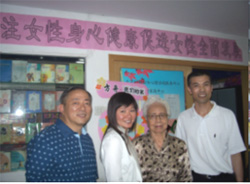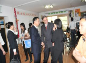 在都江堰外国语学校,香港的唐耀光先生(左一 红枫中心办公室主任沈恩东女士在四川都江堰