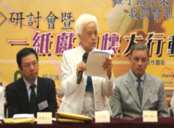 王行娟女士在“一纸献关怀”启动仪式上发言, 香港“一纸献关怀”活动现场,这场活动共收