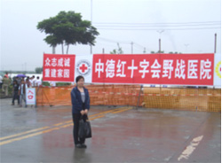为了解灾区人们在心灵重建方面的需要,香港愿景基金会唐耀光先生、香港奥迎公司严道容先生与红枫中心联合到灾区进行调研,在都江堰外国语学校的调研见面会上,红枫中心沈恩东女士向与会者介绍了红枫中心的相关情况。红枫中心和香港愿景儿童发展基金会联合向都江堰外国语学校和中德红十字会野战医院捐赠了药品。