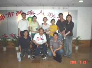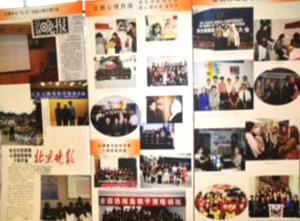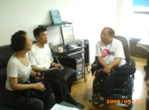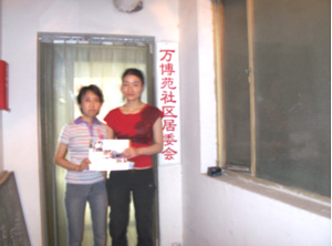 从6月份开始,红枫志愿者深入到北京各区的政府机构、军队、居民委员会、学校、工地,市场、饭店、援助中心、其他民间组织散发红枫热线及红枫灾后心理抚慰热线的宣传资料,先后走访了24家单位,并与其他26家单位建立了联系,得到了妇联和北京红十字会的大力支持,并与海淀区妇联、北京红十字会建立灾后心理抚慰的合作关系。图为红枫中心志愿者在社区发放宣传材料。