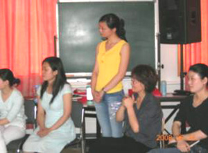 5月24日开始,红枫资深志愿者刘琳霞为“四川汶川强震灾区卫生防疫培训班”进行三个半天的心理危机干预培训。震后灾区急需卫生防疫和心理危机干预人员。31名学员全部来自灾区一线,他们大多是大学毕业后在基层村委会任职的“村官”,从大批报名者中选拔作为第一期学员参加。培训之后,他们将回到灾区组织相关工作,并且作为培训者培训更多的人员,以满足灾区需求。培训班由北京昌平农家女实用技能培训学校举办。