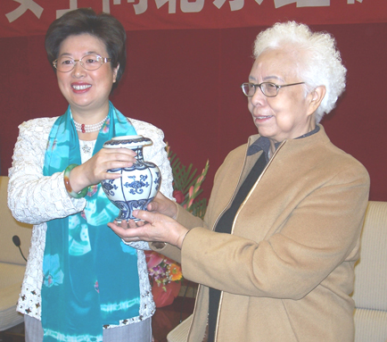 元月22日,国务院侨办九楼大会议厅内,高高悬挂的红底白字大幅横标“曹燕灵女士向北京红枫中心捐赠文物”昭示着这是一个颇不寻常的日子。中国成立最早的民间妇女组织——北京红枫中心自19年前由离休干部王行娟创办以来,第一次接受到个人如此巨额,并且认定项目的捐赠。据了解,这对中国数以十万计应运而生,常常为筹措项目经费而苦恼的民间草根组织来说,也是前所未有的开创先河之举。
