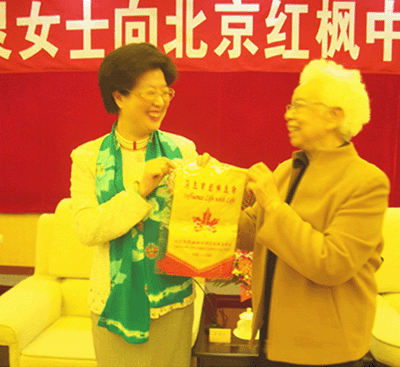 红枫中心创始人、理事长王行娟在讲话中向曹燕灵女士表示了由衷的感谢。她说,目前,我国单亲家庭已达到上千万,单亲家庭的孩子每年以50到60万的数量递增。所以,单亲家庭子女的心理健康与人格的健全发展,已日益成为不能回避的社会问题。一年前,我们在开展了8年单亲项目的基础上,经过大量调研,确定与北京未成年人保护委员会合作,共同在学校开展这个项目。今天,我们得到曹燕灵女士的慷慨捐助,使这个项目能够顺利开展,我谨代表项目执行单位和获益单亲家庭及其子女表示最诚挚的谢意。